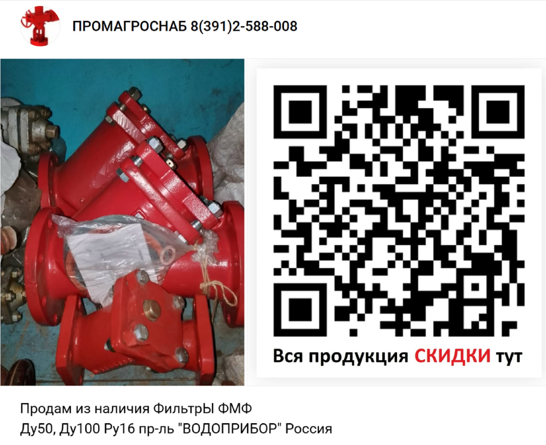 Фильтр ФМФ 100 ,Россия Ду50 Ру16 пр-ль "ВОДОПРИБОР".